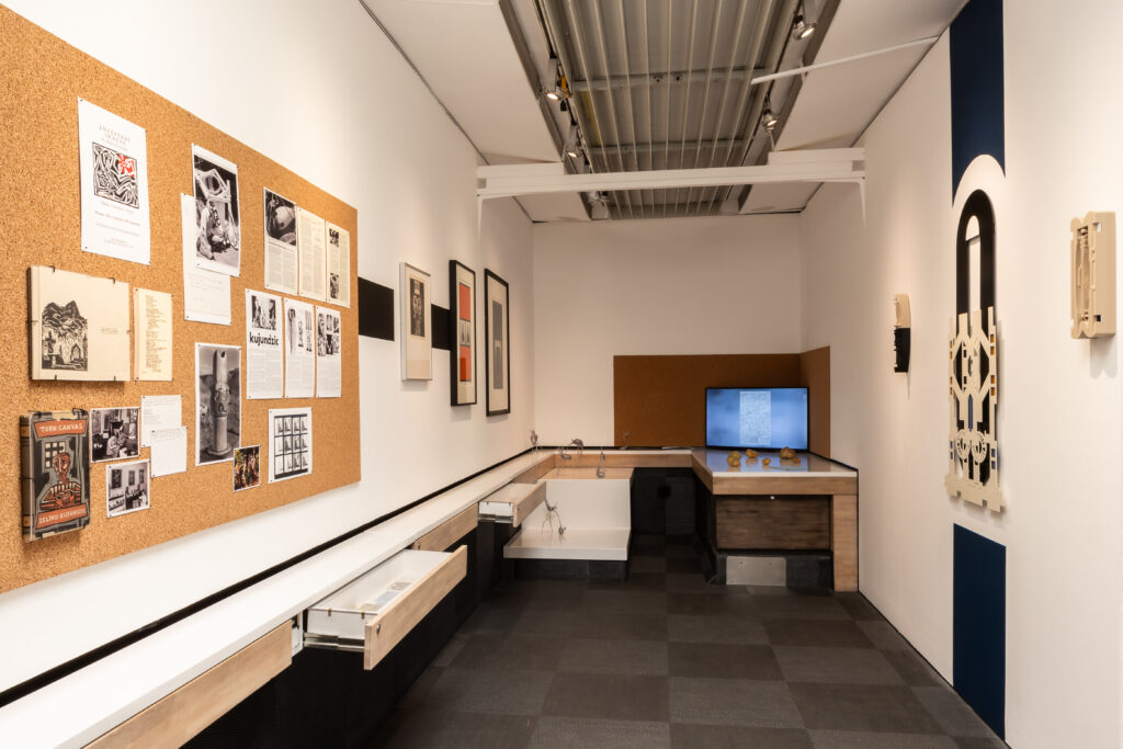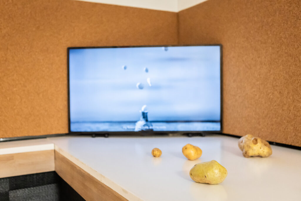 Common across the works in the exhibition is the use of the seed as a means to think about and connect themes concerning ecologies, environments, and migration. For some, the seed represents a world of its own, a self-contained body or cell, capable of crossing borders. For others, it serves as a starting point for alternative possibilities and ways of being. Many of the artists have researched specific seeds in their ‘native’ soils, and after being displaced, in banks and libraries. The potato is offered as an incidental ‘root’ to many of their works. In the film, Kinnomic Botany (2022), Iman Datoo draws upon research in the Commonwealth Potato Collection at the James Hutton Institute near Dundee, the UK’s largest collection of potato seeds, to challenge dominant taxonomies or ways of classifying lives.